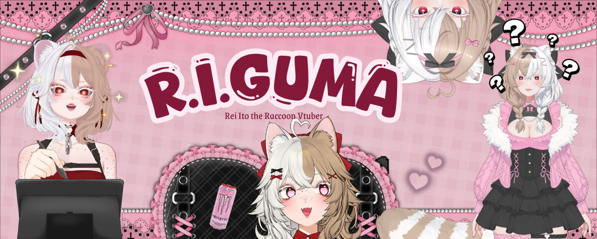 Rei was born to two completely normal raccoons. She was, however, born as a magical part human kemonomimi raccoon girl!She was collected out of the trash by a lovely catboy who domesticated her using Strawberry Monster and consistent, loving care. Since then, she attempts to make art for people, plays video games constantly, and is growing her own little tiny raccoon baby at the moment!Rei loves to laugh and lift others up, but she's a bit coarse and has a saucy sense of humor. She always wants to do right by people, and relies on a very strong support system of beloved gremlins to keep her safe.She's inconsistent, a bit of a girlfailure, but loves girly things and snacks. Currying her favor is as simple as feeding her a good meal and treating her friends right!She hopes you will join her on her journey to improve her art and make new friends playing video games.Come root through the trash with Rei-kun! ♡♡