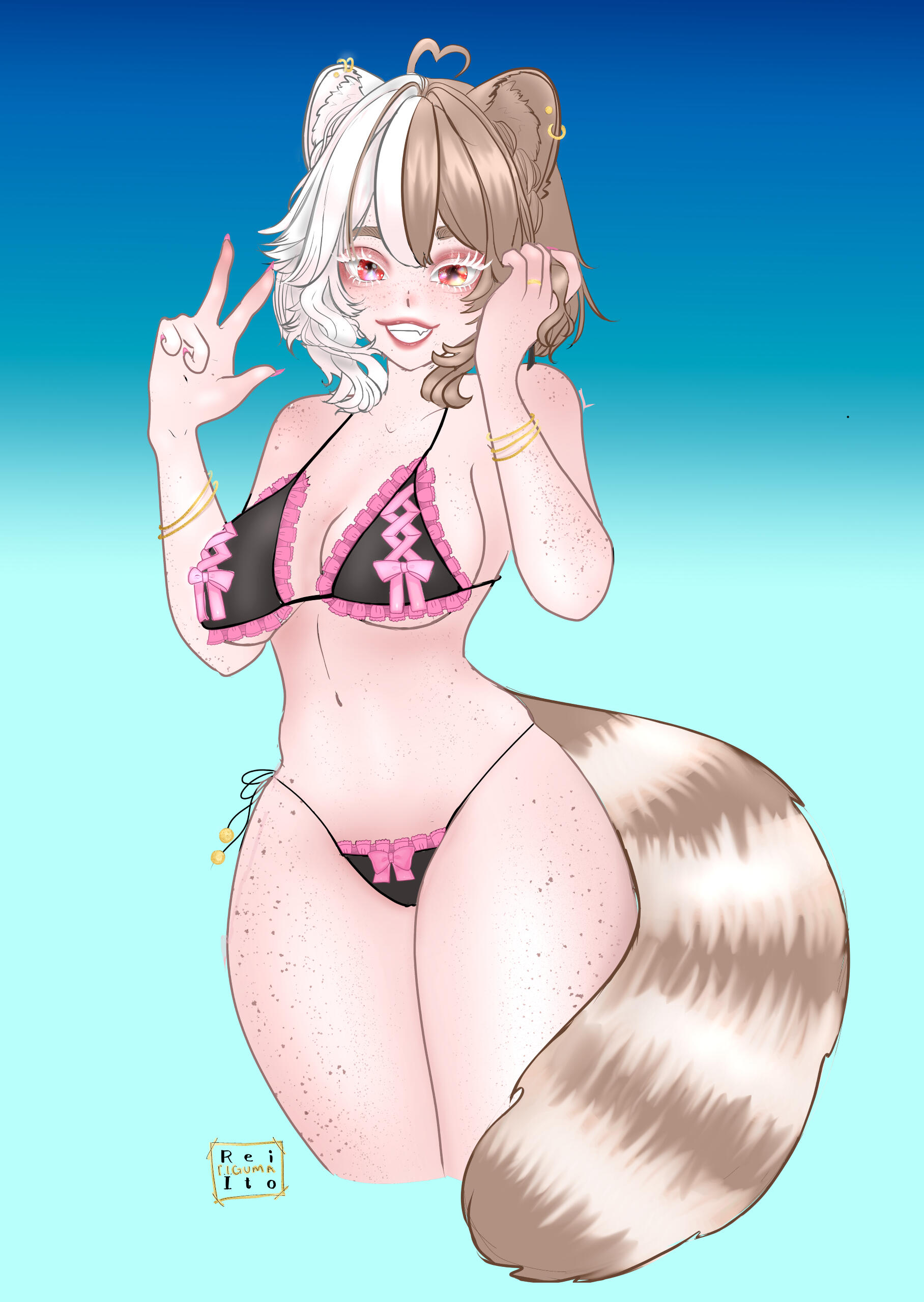 Rei was born to two completely normal raccoons. She was, however, born as a magical part human kemonomimi raccoon girl!She was collected out of the trash by a lovely catboy who domesticated her using Strawberry Monster and consistent, loving care. Since then, she attempts to make art for people, plays video games constantly, and is growing her own little tiny raccoon baby at the moment!Rei loves to laugh and lift others up, but she's a bit coarse and has a saucy sense of humor. She always wants to do right by people, and relies on a very strong support system of beloved gremlins to keep her safe.She's inconsistent, a bit of a girlfailure, but loves girly things and snacks. Currying her favor is as simple as feeding her a good meal and treating her friends right!She hopes you will join her on her journey to improve her art and make new friends playing video games.Come root through the trash with Rei-kun! ♡♡